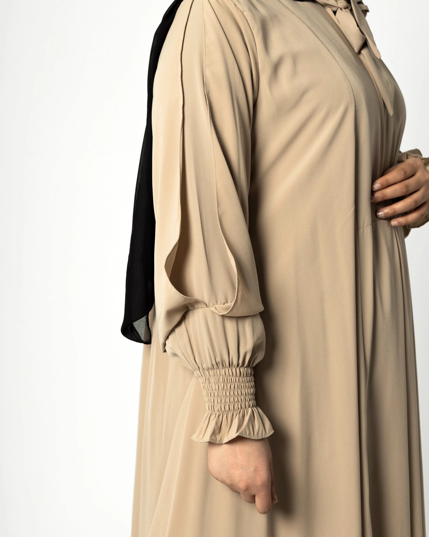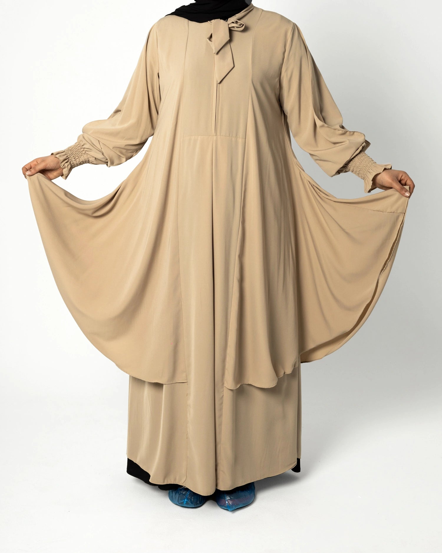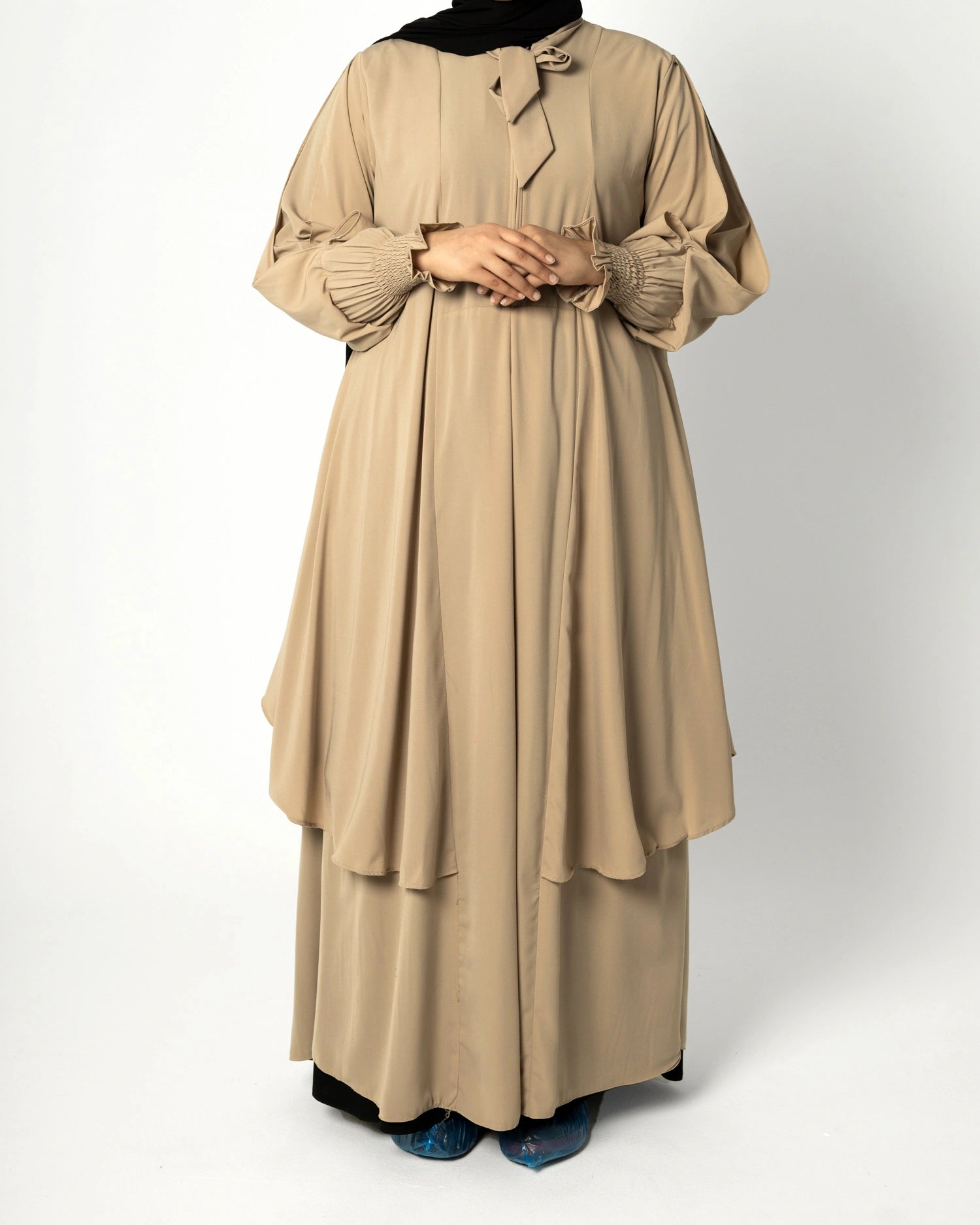 تم تصميم العباية الطبقتين لتمنحك أناقة راقية من خلال تصميمها المكوّن من طبقتين بانسيابية جميلة. تضيف الطبقة الخارجية الناعمة حركة وانسيابًا جذابًا، بينما توفر الطبقة الداخلية الراحة والتغطية الكاملة.