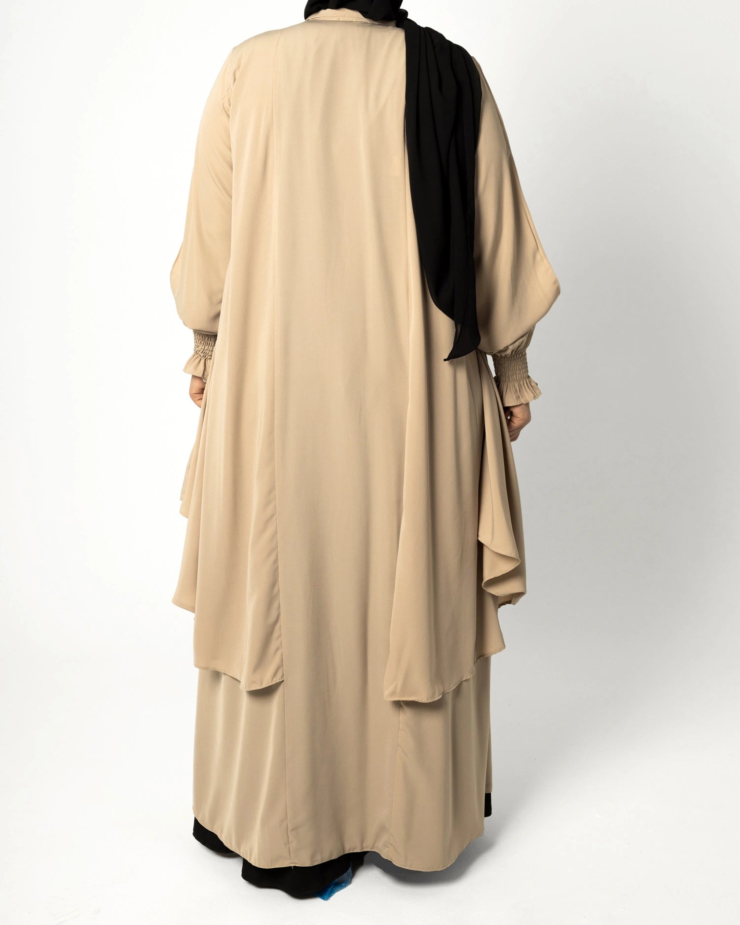 التصميم الطبقتين يمنح العباية انسيابية وأناقة في الإطلالة